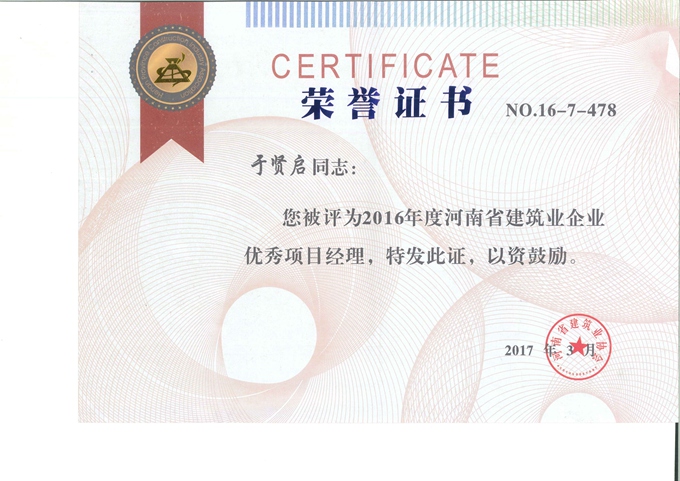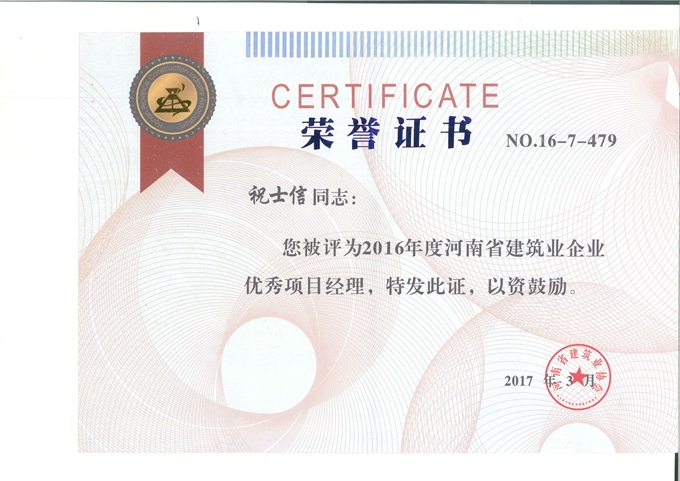 2016年装饰装修优秀项目经理