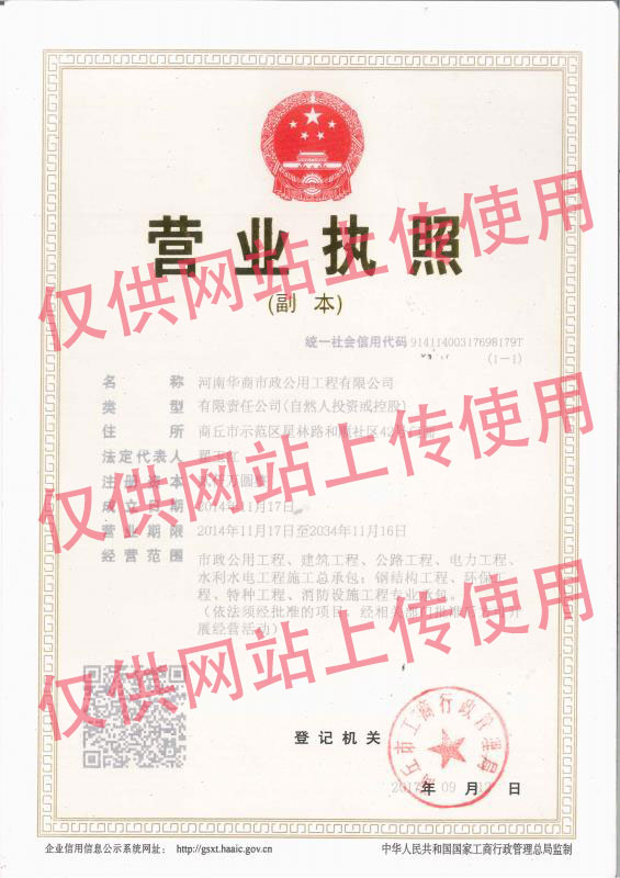 河南华商市政公用工程有限公司营业执照