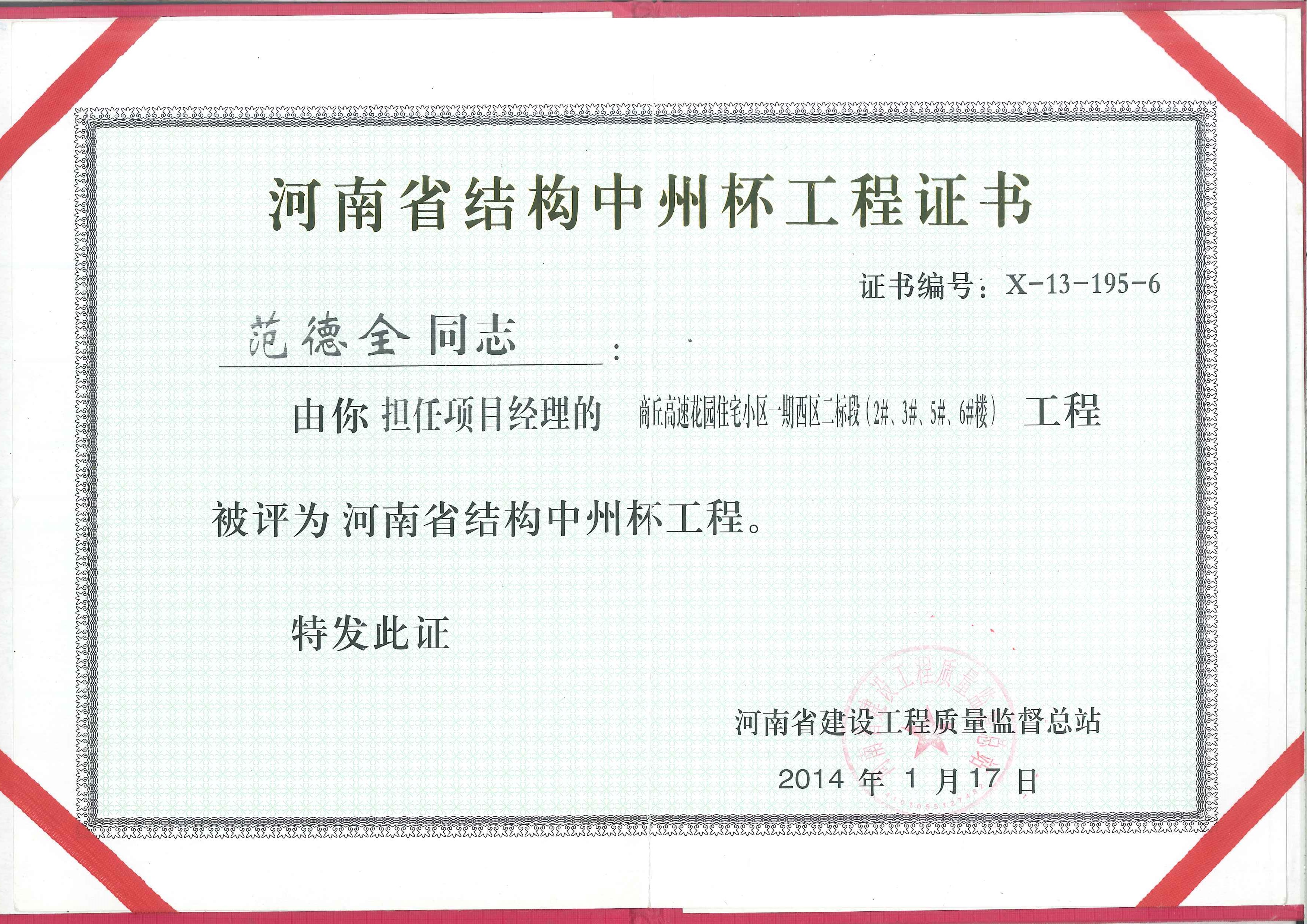 范德全中州杯奖